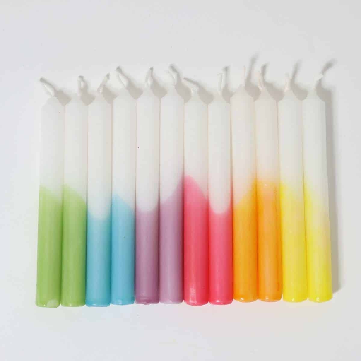 Grimms Festtags-Kerzen Dip-Dye Regenbogen – 12 handgedippte Kerzen