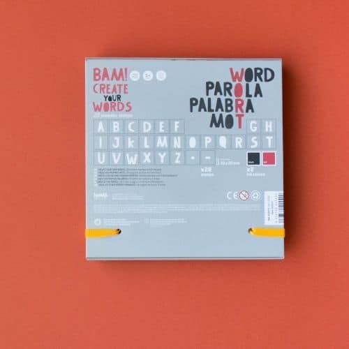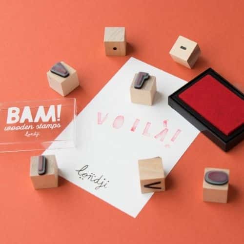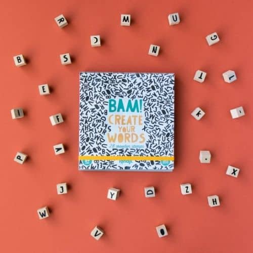 Mit diesen Stempeln erschaffst du die schönsten Wörter, rhythmischen Reime und brillanten Sprüche! 28 Holzstempel für deine literarischen Meisterwerke – verpackt in einem wunderschönen Pappkarton, der wie eine kleine Schreibmaschine aussieht.