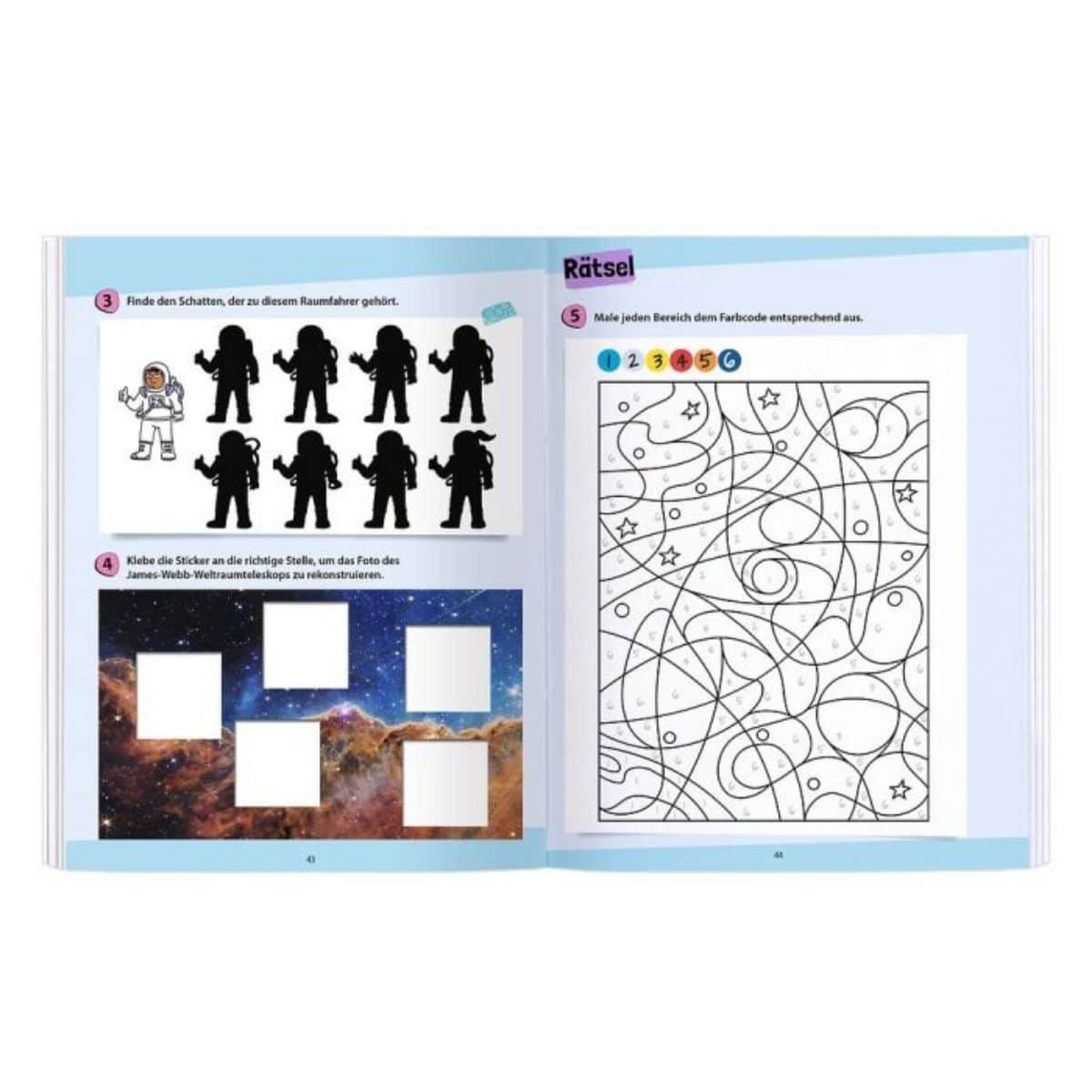 - Spannende Rätsel, Labyrinthe und Suchbilder, die das Wissen über den Sternenhimmel vertiefen