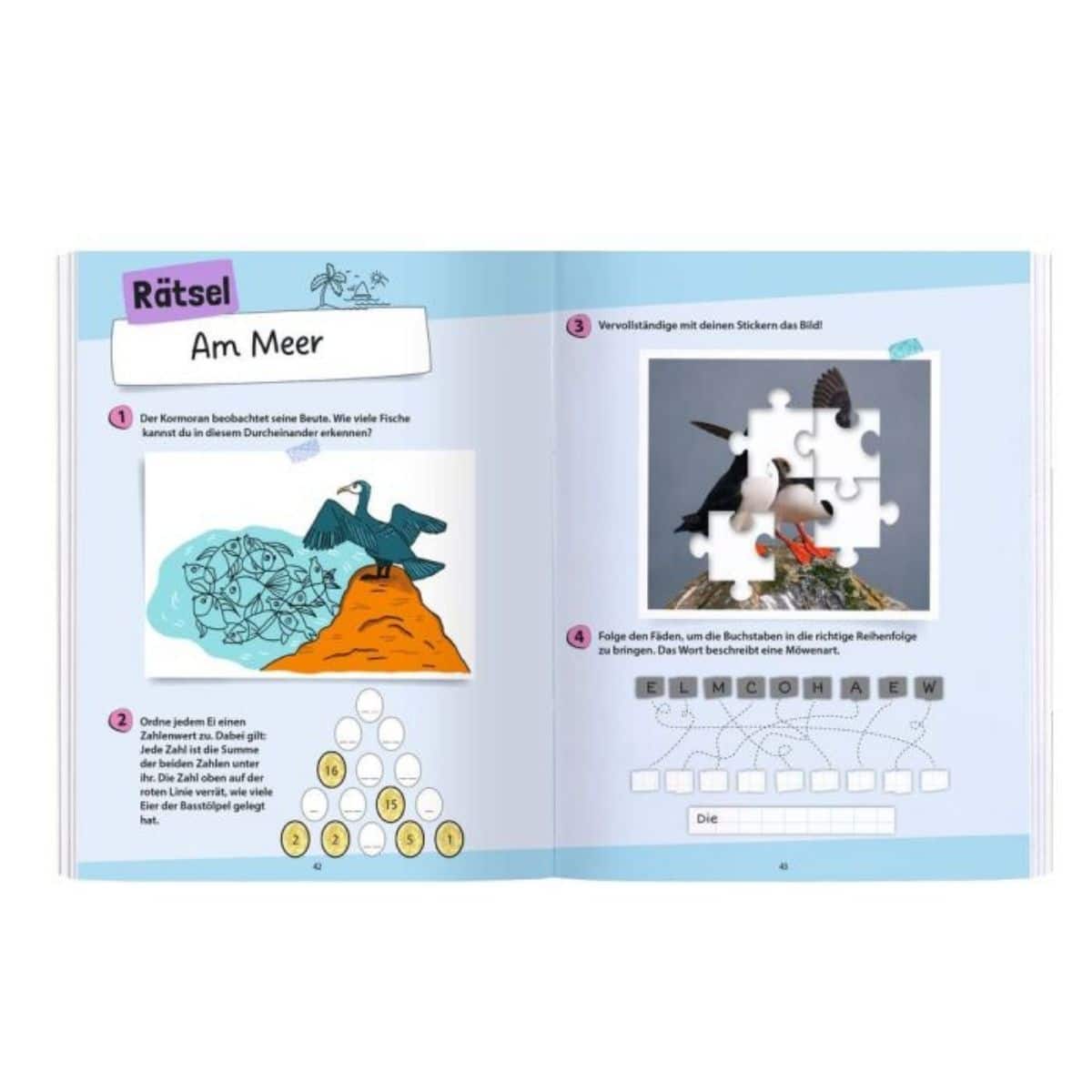 Das Buch kombiniert Naturführer, Rätsel und Sticker in einem: Kinder können Vögel bestimmen, Labyrinthe lösen, Suchbilder entdecken und spannende Aufgaben rund um Vögel und ihre Lebensräume meistern. So wird das Lernen über Vögel zu einem großen Abenteuer.