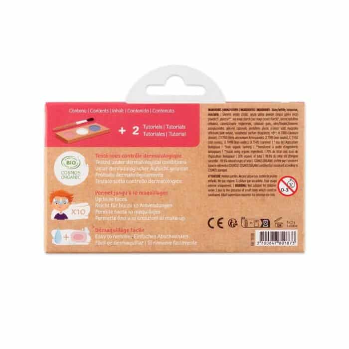 Die Palette basiert auf Bio-Reispuder und natürlichen Inhaltsstoffen. Durch die COSMOS BIO-Zertifizierung und dermatologische Tests ist sie besonders sanft zur Kinderhaut – unbesorgter Spielspaß garantiert.