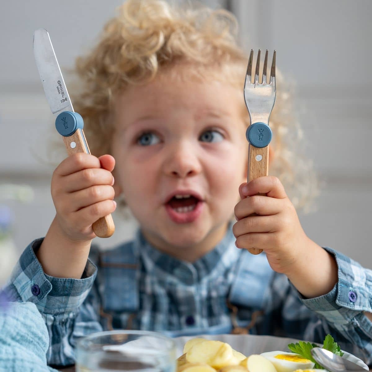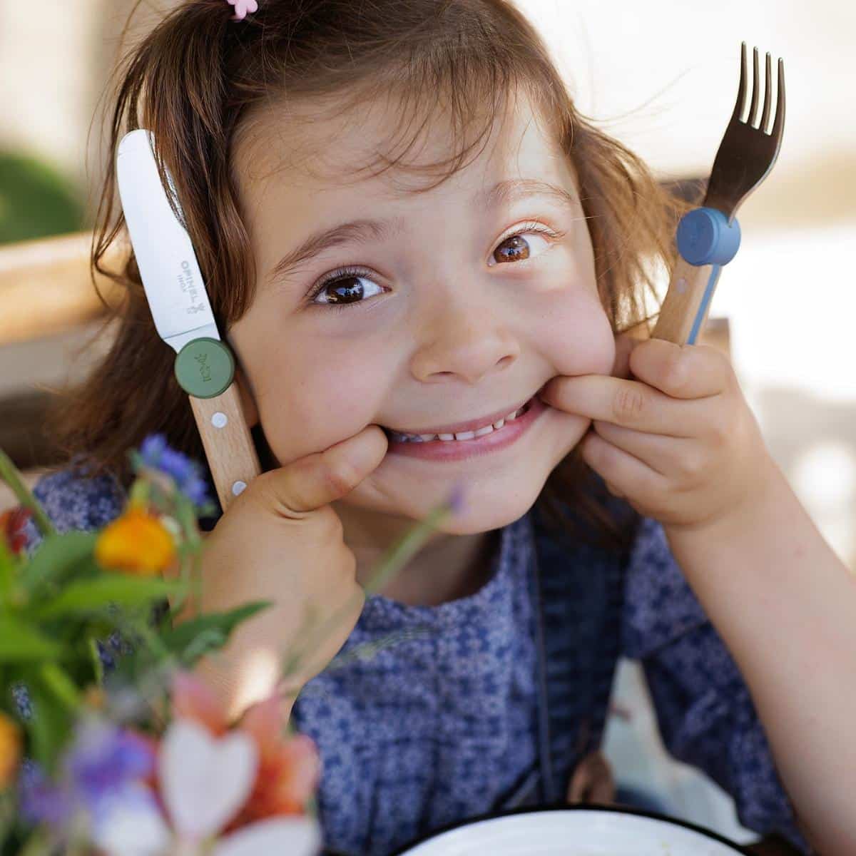 Ob beim Schneiden von Obst, Gemüse oder beim ersten eigenen Kochprojekt: Mit dem Opinel Kinder-Besteck LE PETIT GOURMET können Kinder ab etwa 3 Jahren eigenständig und sicher üben, unter Aufsicht von Erwachsenen.