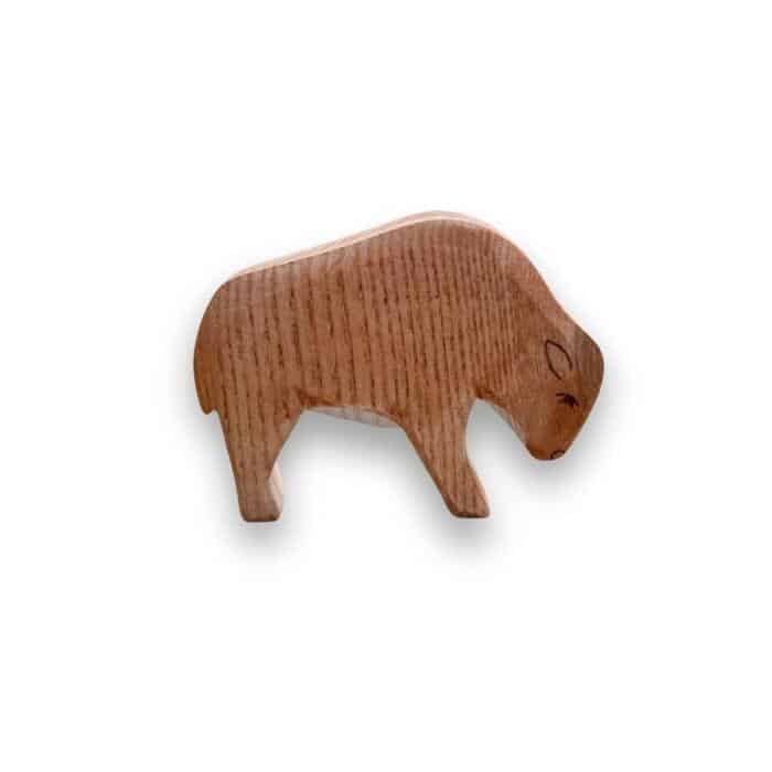 Diese handgefertigte Holzfigur aus hochwertigem, Eschenholz liegt gut in Kinderhänden und eignet sich perfekt für fantasievolles und freies Spielen. Die sanften Rundungen und das natürliche Design machen den kleinen Bison zu einem liebevollen Begleiter für kleine Tierfans.