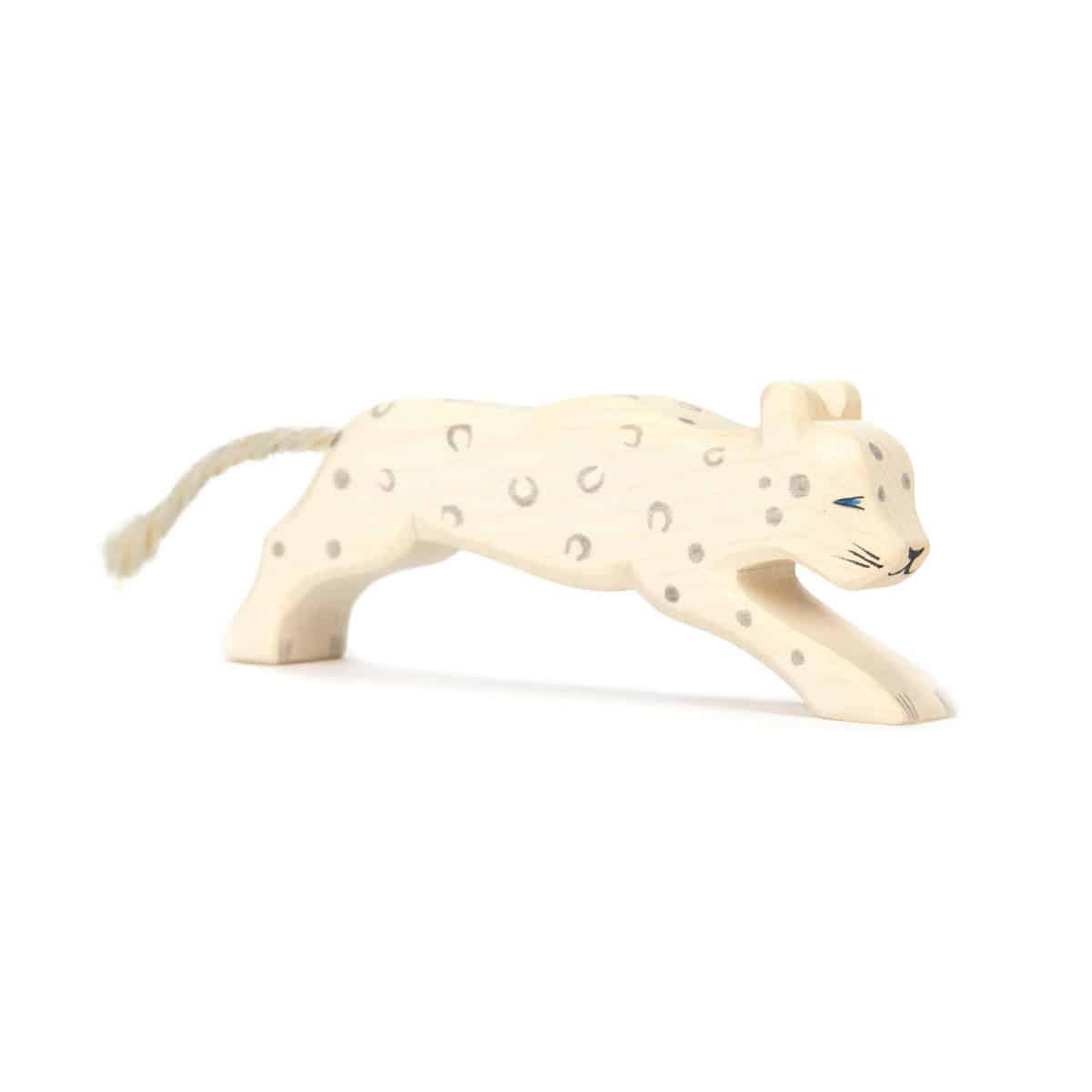 Der Schneeleopard, mit seinem dichten Fell und seinen auffälligen Rosetten, wird in der Ostheimer-Version kunstvoll nachgebildet, wobei die natürlichen Formen und Bewegungen des Tieres fein herausgearbeitet sind. Durch die Verwendung hochwertiger Hölzer und Farben strahlt die Figur eine natürliche Wärme und Schönheit aus, die jeden Betrachter verzaubert.