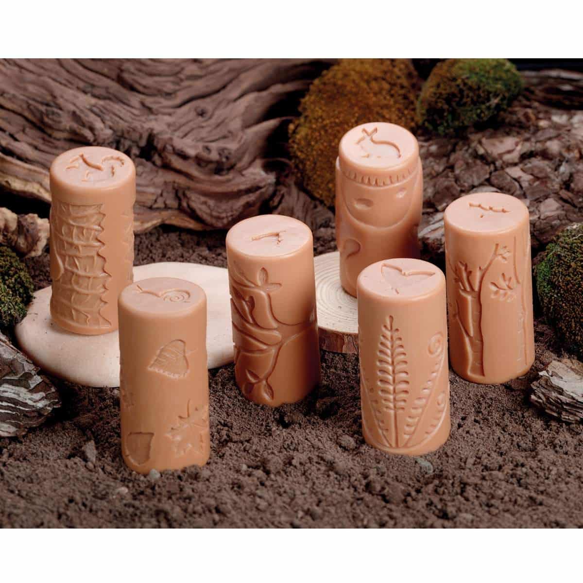 Das Knetroller Set enthält sechs Rollen mit Motiven von Waldtiere mit passenden Lebensräumen: Vogel und Baum, Fledermaus und Holz, Motte und Farn, Eichhörnchen und Baumstamm, Schnecke und Blätter sowie Kaninchen und Bau. Ideal als Lernspielzeug, Montessori-inspiriertes Spielzeug und pädagogisches Spielzeug für Kindergarten und Kita.