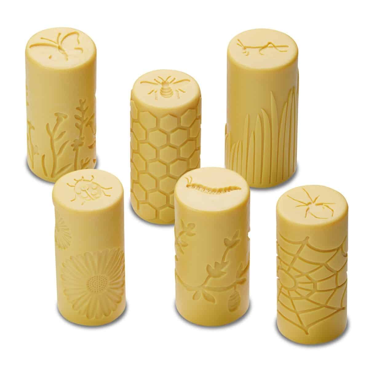Durch einfaches Rollen und Stempeln gestalten Kinder lebendige Szenen: Bienen auf der Honigwabe zählen, Marienkäfer zu Blumen zuordnen oder kleine Geschichten aus dem Garten erfinden. Dabei werden Fantasie, Feinmotorik, Konzentration und sensorisches Lernen gezielt gefördert. Kinder können mit unterschiedlichem Druck und verschiedenen Rollbewegungen experimentieren und so ihre motorischen Fähigkeiten weiterentwickeln.