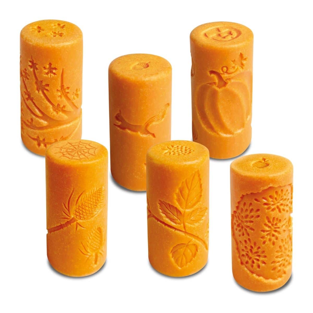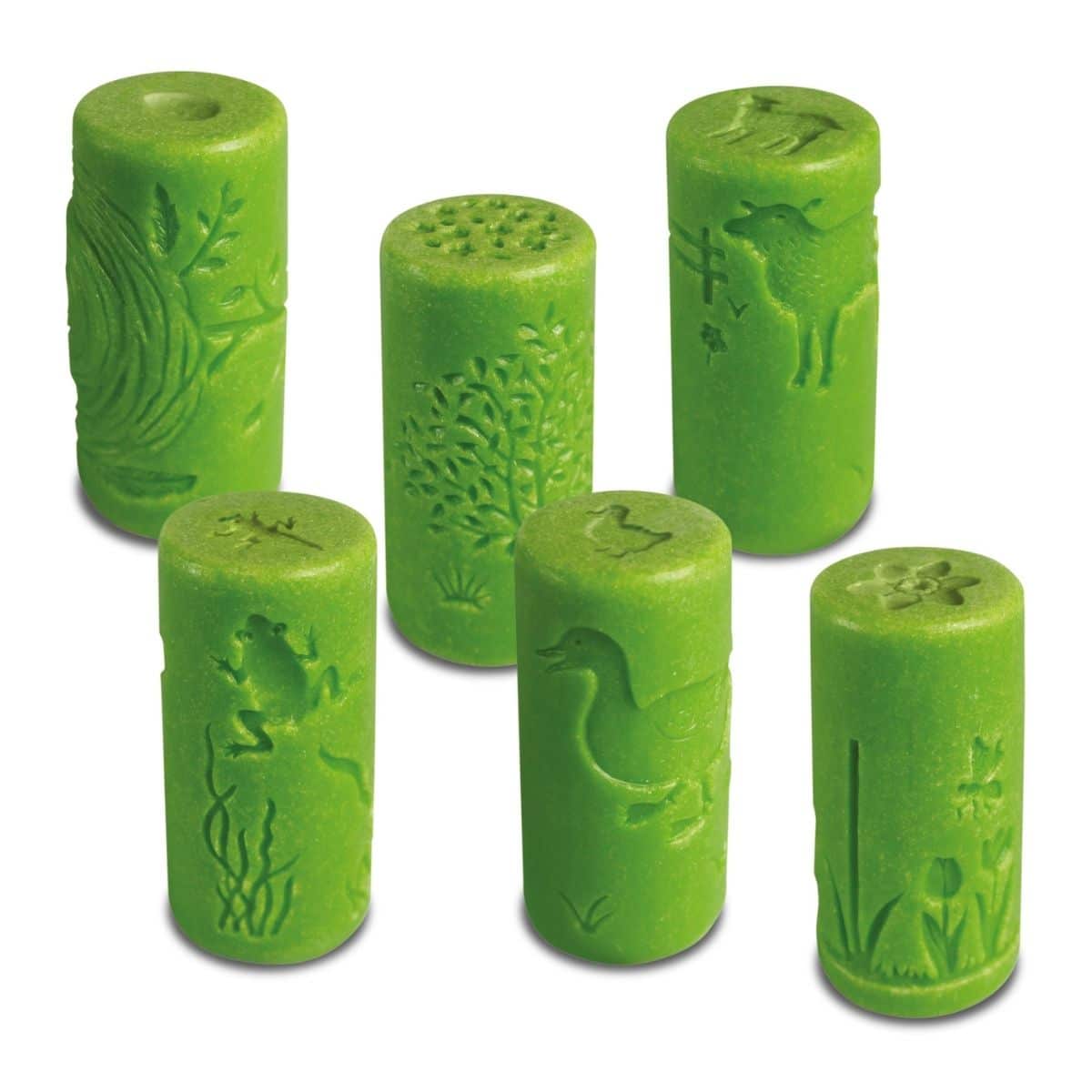 Durch einfaches Rollen in Knete, Modelliermasse, Ton oder Sand entstehen detailreiche Szenen aus Frühling, Sommer, Herbst und Winter. Je stärker der Druck, desto mehr Details werden sichtbar – ideal zur Förderung der sensorischen Wahrnehmung, der Hand-Auge-Koordination und der Feinmotorik.